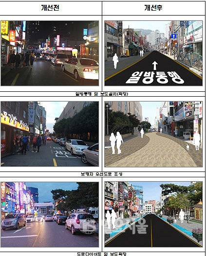 동래 온천문화거리 보행환경개선 조정 사업전과 사업 후