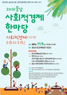 2일 도에 따르면, 충남사회적경제협의회가 주최하고 충남사회적경제연구센터가 주관하는 ‘충남 사회적경제 한마당’이 오는 9일 도청 문예회관에서 열린다.