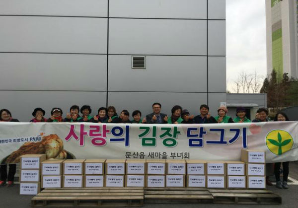 또 성삼수 문산읍장은 “갑자기 추워진 날씨에도 김장담그기 행사에 참여해준 부녀회원들과 전기초자코리아 임직원에게 감사드린다”며 “어려운 이웃을 위해 헌신하시는 주민 여러분의 뜻에 힘입어 앞으로도 문산읍에서는 모든 주민이 행복한 문산을 만들기 위해 노력하겠다”고 밝혔다.
