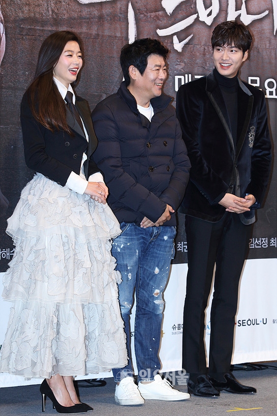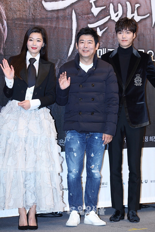 ▲드라마 푸른바다의 전설 제작발표회에 참석한 전지현-성동일-이민호