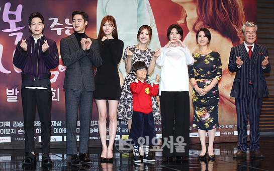 [일요서울 | 송승진 기자] 18일 오후 서울 마포구 상암 MBC 신사옥에서 열린 MBC 새 일일저녁드라마 '행복을 주는 사람' 제작발표회에 참석한 주요출연자 손승원-이하율-하연주-이윤지-조연호-김미경-송옥숙-손종학이 포토타임을 갖고 있다.
