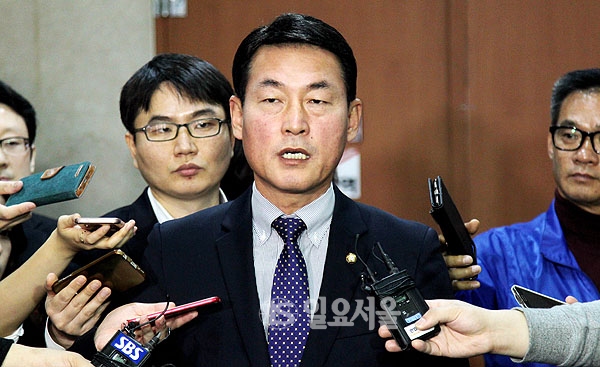 새누리 비주류의원 모임인 비상시국회의의 대변인 역할을 하고 있는 황영철 의원이 21일 오후 국회에서 박근혜 대통령에 대한 당 차원의 조치를 요구하는 기자회견을 마치고 기자들의 질문에 답하고 있다.
