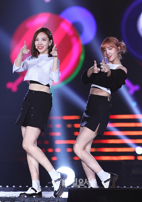 ▲2016 슈퍼서울드림콘서트에 참석해 공연 펼치는 트와이스 나연-모모
