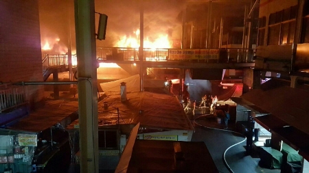 [일요서울 | 조택영 기자] 대구시 중구 큰장로에 위치한 서문시장 4지구에서 3일 오전 2시 8분경 화재가 발생해 소방당국이 6시간이 넘게 진화작업을 벌이고 있다. 가운데 건물 일부와 천장이 무너져 내린 것으로 확인됐다.