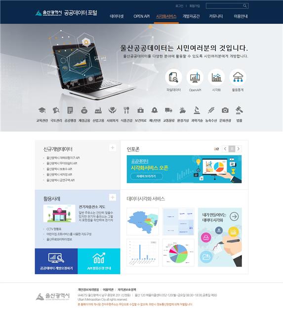 ‘울산광역시 공공데이터 개방시스템(data.ulsan.go.kr)’은 시, 구‧군, 산하 공공기관의 공공데이터를 통합 서비스하여 시민 누구나 한 곳에서 손쉽게 공공데이터를 검색해 제공받을 수 있는 포털로 2015년 12월 서비스를 시작해 왔다.
