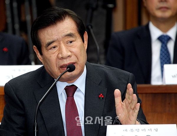 한광옥 대통령 비서실장이 5일 오후 국회에서 열린 '박근혜 정부의 최순실 등 민간인에 의한 국정농단 의혹 사건 진상 규명을 위한 국정조사 특별위원회' 2차 기관보고에서 증인으로 출석해 의원들의 질의에 답하고 있다.