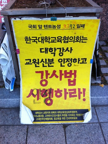 비정규직 대학 강사 신분 보장 위해 국회 앞 노숙농성