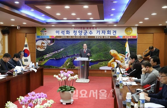 [일요서울ㅣ충남 윤두기 기자] 이석화 청양군수가 14일 오전 10시 군청 상황실에서 기자회견을 개최해 2016년을 마무리하면서 올해 이룬 군정 성과와 2017년도 비전을 밝히고, 최근 지역 일부에서 제기된 의혹을 해소하는 시간을 가졌다.