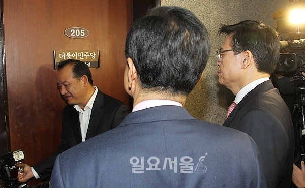 정우택 새누리당 원내대표가 19일 오전 국회 더불어민주당 대표실에서 예방 요청을 거부당한채 돌아서고 있다.