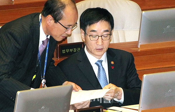 이준식 교육부 장관이 21일 국회 본회의장에서 열린 정치·외교·통일·안보·교육·사회·문화분야 대정부질문에 참석해 답변자료를 준비하고 있다.