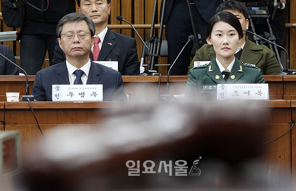 22일 오전 국회에서 열린 박근혜 정부의 최순실 등 민간인에 의한 국정농단 의혹사건 진상규명을 위한 국정조사 5차 청문회에서 우병우 전 청와대 민정수석과 조여옥 대위가 증인으로 출석해 자리하고 있다. 2016.12.22 일요서울 정대웅 기자