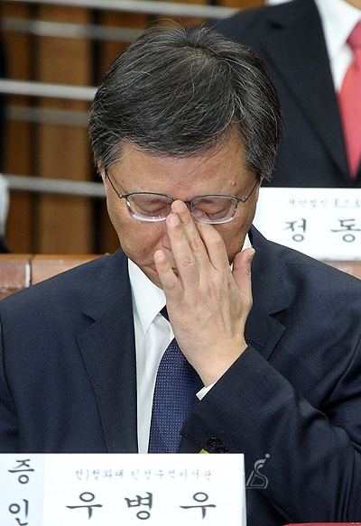 22일 오전 국회에서 열린 박근혜 정부의 최순실 등 민간인에 의한 국정농단 의혹사건 진상규명을 위한 국정조사 5차 청문회에서 증인으로 출석한 우병우 전 청와대 민정수석이 안경을 고쳐쓰고 있다. 2016.12.22 일요서울 정대웅 기자