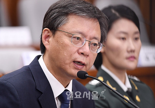 우병우 전 청와대 민정수석이 22일 오전 서울 여의도 국회에서 열린 박근혜 정부의 최순실 등 민간인에 의한 국정농단 의혹사건 진상규명을 위한 국정조사특별위원회의 5차 청문회에서 의원들의 질문에 답변하고 있다.
