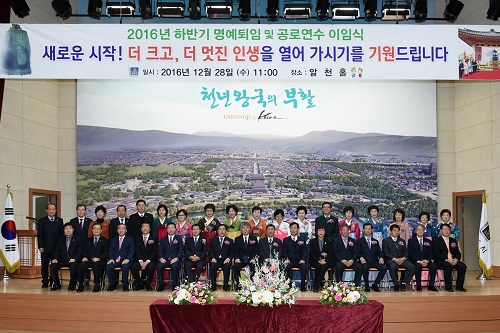 [일요서울ㅣ경북 이성열 기자] 주시가 28일 알천홀에서 2016년도 하반기 명예퇴직 및 공로연수 이임식을 가졌다.