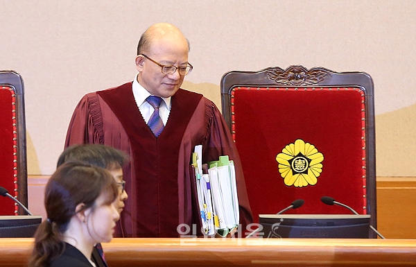 16일 서울 종로구 헌법재판소에서 열린 박근혜 대통령 탄핵심판 5차 변론에서 박한철 헌재소장이 입장하고 있다. 사진공동취재단 정대웅 기자 photo@ilyoseoul.co.kr 저작권자 © 일요서울i 무단전재 및 재배포 금지 정대웅 기자 다른기사 보기