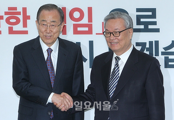 반기문 전 유엔사무총장이 1일 오전 서울 여의도 새누리당사를 찾아 인명진 비상대책위원장과 인사하고 있다. 정대웅 기자 photo@ilyoseoul.co.kr 저작권자 © 일요서울i 무단전재 및 재배포 금지 정대웅 기자 다른기사 보기