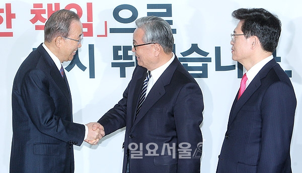 반기문 전 유엔사무총장이 1일 오전 서울 여의도 새누리당사를 찾아 인명진 비상대책위원장, 정우택 원내대표와 인사하고 있다. 정대웅 기자 photo@ilyoseoul.co.kr 저작권자 © 일요서울i 무단전재 및 재배포 금지 정대웅 기자 다른기사 보기