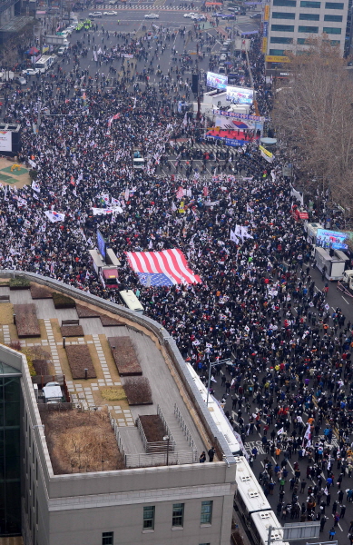 경찰은 이날 촛불집회 측과의 충돌 가능성을 대비하기 위해 도심에 176중대 1만4000여명을 배치했다.