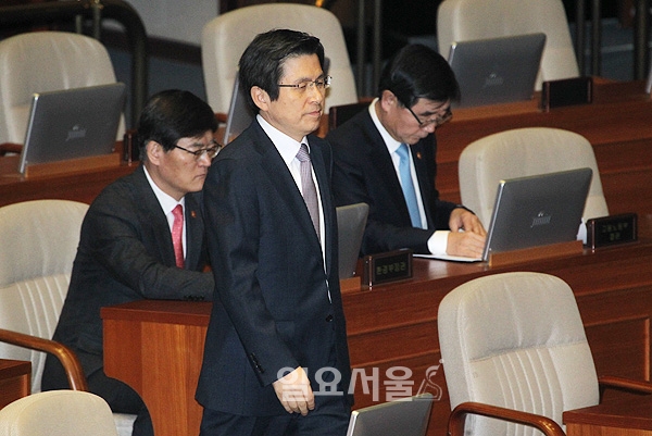황교안 국무총리겸 대통령 권한대행이 6일 오전 열린 국회 본회의에 참석하고 있다. 정대웅 기자 photo@ilyoseoul.co.kr 저작권자 © 일요서울i 무단전재 및 재배포 금지 정대웅 기자 다른기사 보기