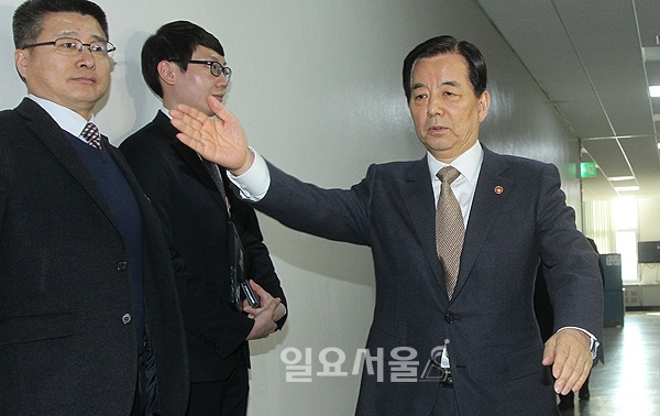 한민구 국방부 장관이 20일 오후 국회 국방위에서 열린 김정남 피살 관련 긴급 간담회에 참석하기 위해 위원장실로 향하고 있다.
