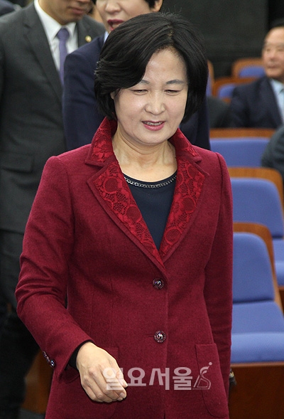 추미애 더불어민주당 대표가 27일 국회에서 열린 긴급 의원총회에 참석하며 씁쓸한 미소를 짓고 있다. 정대웅 기자 photo@ilyoseoul.co.kr 저작권자 © 일요서울i 무단전재 및 재배포 금지 정대웅 기자 다른기사 보기