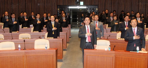 여기에 한국당 의원 58명이 참석했고 나머지 36명은 동참하지 않았다. 그러자 친박 강경파에서는 아예 이를 당론으로 채택하자고 나섰고 인명진 비대위원장을 비롯해 정우택 원내대표는 난색을 표했다. 정우택 원내대표는 이날 “특정 결론을 당론으로 정하지 않고 탄핵심판에 절대 승복한다는 게 원칙”이라면서 친박 강경파의 요구를 일축했다.