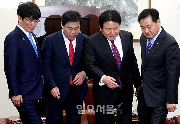 15일 오후 국회 운영위원장실에서 교섭단체 4당 원내수석부대표들이 회동을 시작하며 취재진을 향해 포즈를 취하고 있다. 더불어민주당 박완주(왼쪽부터), 자유한국당 김선동, 바른정당 정양석, 국민의당 김관영 원내수석부대표. 정대웅 기자 jeongpd@ilyoseoul.co.kr 저작권자 © 일요서울i 무단전재 및 재배포 금지 정대웅 기자 다른기사 보기