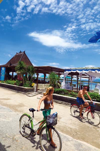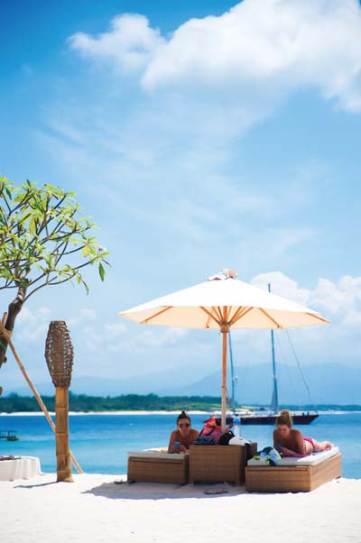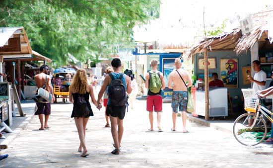 굳이 비교를 하자면, 몰디브와 보라카이를 섞어놓은 듯한 분위기다. 그 어떤 에메랄드빛을 상상하건 그 이상으로 아름다운 빛깔을 뿜어내는 바다와 티셔츠 한 장을 걸쳐도 모델 같은 유럽 여행객들이 일광욕을 즐기는 화보의 한 장면을 떠올리면 바로 정답이다. 실제 길리를 찾는 여행자의 80%는 유러피언들이다. 작고 예쁜 카페, 바, 클럽, 레스토랑이 섬 주변을 따라 끝없이 이어진다. 젊음과 멋이 빵빵 터진다. 흥분은 그저 필연이다.
