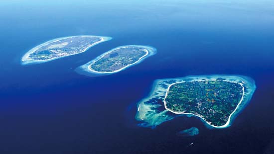 롬복의 진짜 주인공은 따로 있다. 그 주인공은 롬복 북서부에 자리한 작은 세 개의 섬, ‘길리 삼총사’. 이 세 개의 섬은 걸어서 불과 2~3시간이면 한 바퀴를 돌아볼 수 있을 정도로 작다.