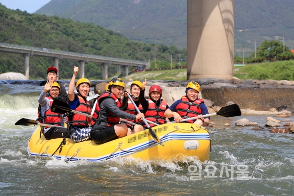 [일요서울ㅣ산청 양우석 기자] 5월 들어 때 이른 더위가 계속되고 있는 가운데 15일 산청군 산청읍 경호강을 찾은 관광객들이 래프팅을 즐기며 더위를 피하고 있다.