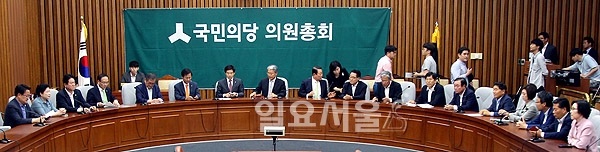 박주선 국민의당 비상대책위원장과 박지원 전 대표 등이 27일 오후 국회에서 열린 의원총회에서 '문준용 입사 특혜 의혹 조작'과 관련해 대화하고 있다.