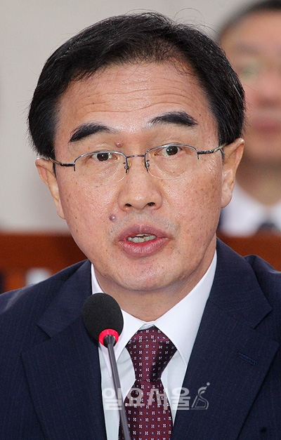 조명균 통일부 장관 후보자가 29일 오후 국회 외교통일위원회에서 열린 인사청문회에서 의원들의 질문에 답변하고 있다.