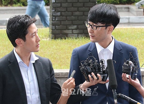 '문준용 취업 특혜 의혹 조작' 사건에 개입한 혐의를 받고 있는 이준서 국민의당 전 최고위원이 3일 서울남부지검 출석하며 기자들의 질문을 받고 있다.