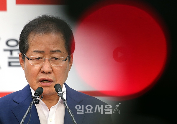자유한국당 홍준표 신임 당대표가 3일 오후 서울 여의도 당사에서 기자회견을 하고 있다.