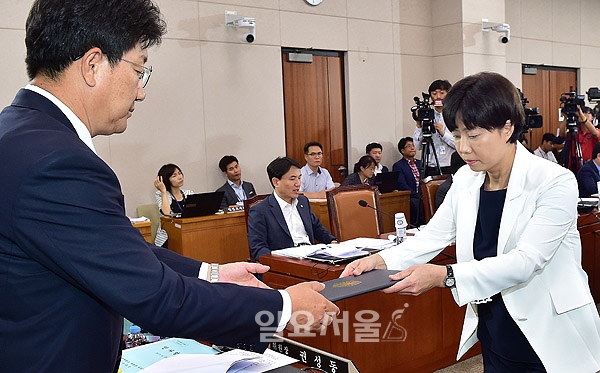 이유정 헌법재판관 후보자가 28일 국회 법제사법위원회에서 열린 인사청문회에서 선서를 마친 뒤 권성동 위원장에게 선서문을 제출하고 있다. 정대웅 기자 jeongpd@ilyoseoul.co.kr 저작권자 © 일요서울i 무단전재 및 재배포 금지 정대웅 기자 다른기사 보기