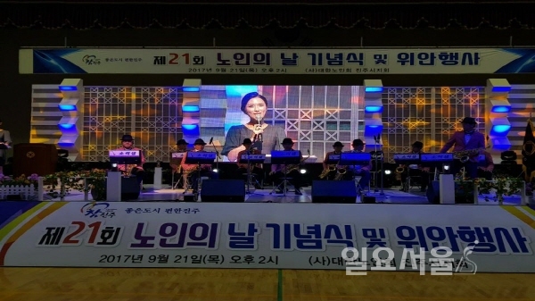 1부 기념식에는 모범어르신 및 어르신복지기여자 등 17명에 대한 진주시장의 표창패를 수여했고, 2부 위안공연은 인기가수초청과 어르신들이 평소 갈고 닦아온 태권체조 공연 및 색소폰 연주 등 다양한 공연이 이어졌다.