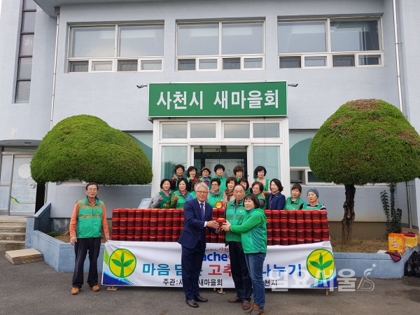 [일요서울ㅣ사천 이도균 기자] 경남 사천시새마을부녀회(회장 조영숙)는 지난 7일 오후 3시 전 읍면동 부녀회장이 참여한 가운데 사천시새마을회관에서 사천시의 후원으로 고추장600통(1.2kg)을 담아서 ‘마음 담은 고추장’나누기 행사를 개최했다. 이번 나눔 행사는 전 읍면동 한부모가정에 직접 담은 고추장을 전달함으로써 이웃 간의 따뜻한 정을 나누고 더불어 사는 공동체 정신을 몸소 실천하는 동시에 밝고 건강한 사회 만들기에 앞장서기 위해 마련됐다. 조영숙 새마을부녀회장은 “작은 정성이지만 우리의 마음이 담긴 고추장이 사랑과 관심을 필요로 하는 어려운 이웃에게 전달되어 따뜻한 정을 나누는 계기가 되었으면 좋겠다.” 라고 말했다. 한편, 고추장은 전 읍면동을 통해 각 세대에 전달될 예정이다. 경남 이도균 기자 news2580@ilyoseoul.co.kr 저작권자 © 일요서울i 무단전재 및 재배포 금지 경남 이도균 기자 다른기사 보기