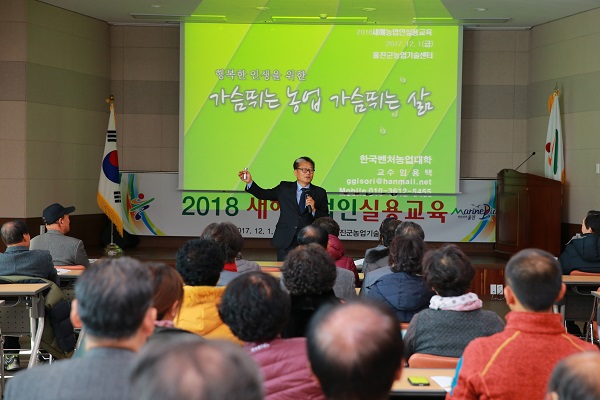 울진군(군수 임광원)은 12월 1일 농업기술센터에서 농업인단체 임원 100여명을 대상으로 ‘2018년 새해농업인실용교육’ 첫 교육을 시작했다.