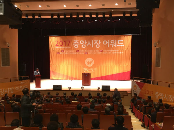 [일요서울ㅣ대전 이용일 기자] 대전 동구(구청장 한현택)는 7일 대전청소년위캔센터 대강당에서 지난 한 해 땀과 노력으로 전통시장의 우수성을 널리 알린 상인들을 격려하기 위한 2017년 중앙시장 어워드가 개최됐다고 밝혔다.