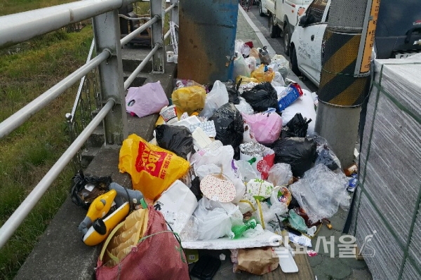 또한 재활용품의 경우 품목별로 분류해 투명한 비닐에 배출해야 수거가 되지만 구분 없이 한꺼번에 담아 배출하거나 일부 생활쓰레기와 혼합해 배출하고 있다. 뿐만 아니라 음식물 등 이물질이 묻은 상태로 배출하고 있어 하절기의 경우 악취발생의 요인이 되고 있는 실정이다.