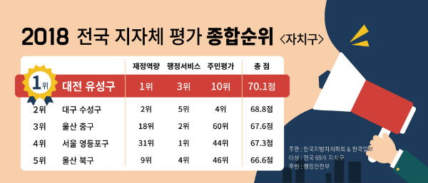 대전 유성구 ‘2018년도 전국 지방자치단체 평가’ 자치구 부문 종합 1위