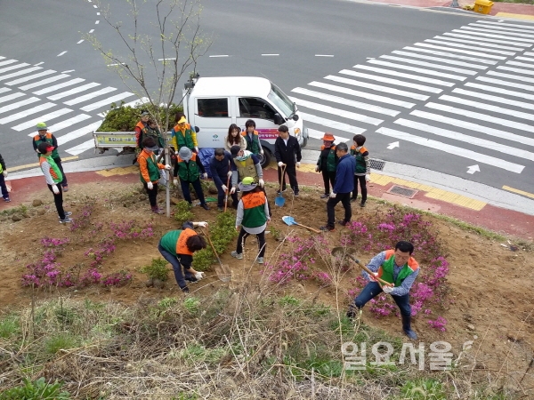 명곡동 자율방재단ㆍ주민, 영산홍ㆍ철쭉 400주 ‘명곡’ 새겨 식재