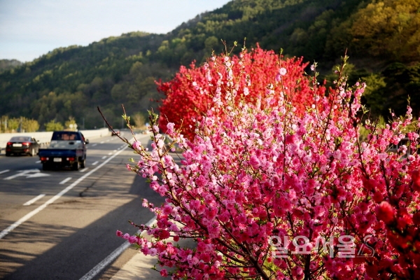 [일요서울ㅣ의령 이도균 기자] 봄기운이 완연한 가운데 의령군 가례면 국도변에는 홍도화(紅桃花)가 붉게 물들어 지나는 사람들의 발길을 멈추게 하고 있다.