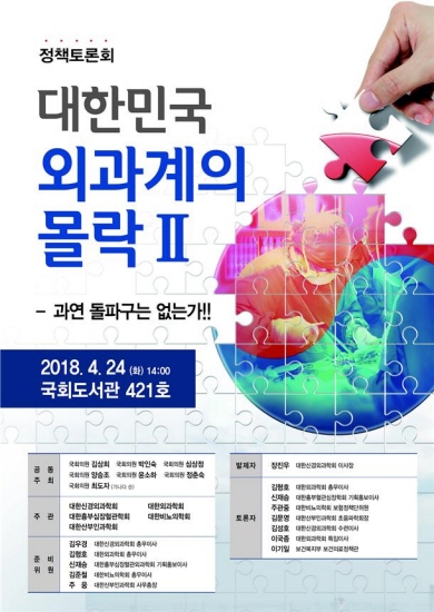 토론회는 국회의원 김상희(더불어민주당)·박인숙(자유한국당)·심상정(정의당)·양승조(더불어민주당)·윤소하(정의당)·정춘숙(더불어민주당)·최도자(바른미래당) 의원 공동 주최, 대한신경외과학회, 대한외과학회, 대한흉부심장혈관외과학회, 대한비뇨기과학회, 대한산부인과학회 등 5개 외과계 학회의 공동 주관으로 개최된다.