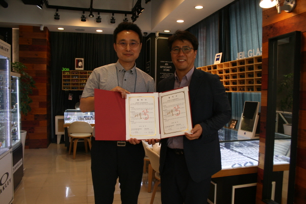 제일안경원 김영일대표(좌), 평거사회복지관 안병용관장(우)