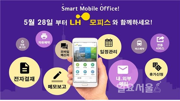 [일요서울ㅣ진주 이도균 기자] LH는 시간과 장소 제약 없는 스마트한 업무 체제를 구축하기 위해 이달 11일 'LH 모피스‘를 런칭, 모바일 전자결재 서비스 등을 제공한다.