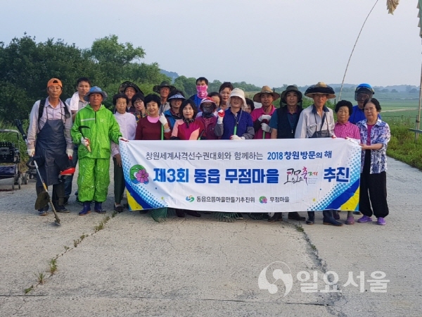 [일요서울ㅣ창원 이도균 기자] 경남 창원시 의창구 동읍행정복지센터(읍장 손문기)는 ‘제3회 동읍 무점마을 코스모스축제’의 성공적인 개최를 위해 새터민 자원봉사단체(대표 허성화) 및 무점마을(이장 이재홍)과 업무협약을 체결하고 폭염 속에서 열심히 코스모스길을 가꾸는 중이라고 전했다.