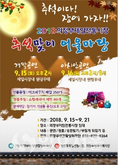 [일요서울|의정부 강동기 기자] 의정부시 상권활성화재단의 지역선도시장 육성사업단은 다가오는 추석 명절을 맞아 전통시장 구역 내에서 가을축제(‘추석맞이 어울림 마당‘)를 개최한다.