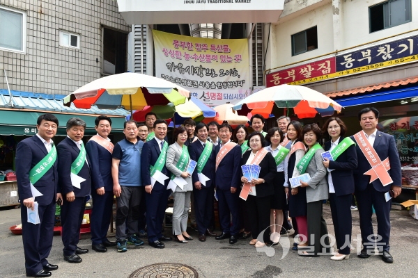 [일요서울ㅣ진주 이도균 기자] 경남 진주시의회(의장 박성도)는 17일 민족의 고유 명절인 추석을 맞아 진주시 상대동 자유시장을 방문해 전통시장 이용하기 캠페인을 펼쳤다.