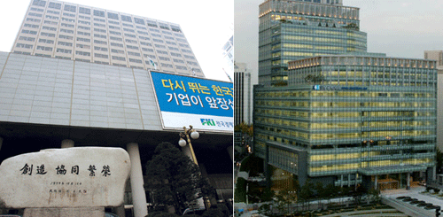 서울 여의도동에 있는 전경련 회관(좌) · 서울 중구 남대문 옆에 있는 대한상의 회관